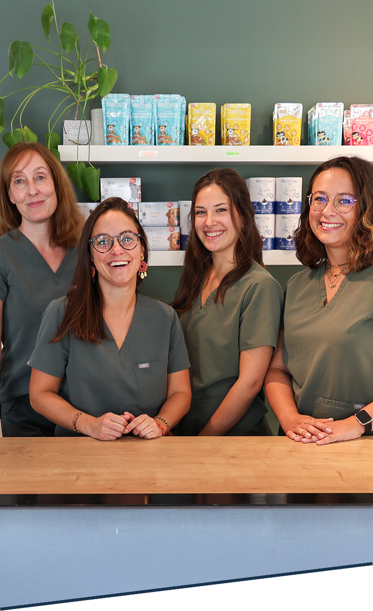 Nos 4 ASV sont disponibles pour répondre à vos questions par téléphone, que ce soit pour prendre un rendez-vous, obtenir des informations sur nos services ou discuter des préoccupations concernant votre animal. Elles vous accueillent également à la réception pour vos rendez-vous, pour l’achat de médicaments ou pour tout conseil concernant l’alimentation de votre animal.